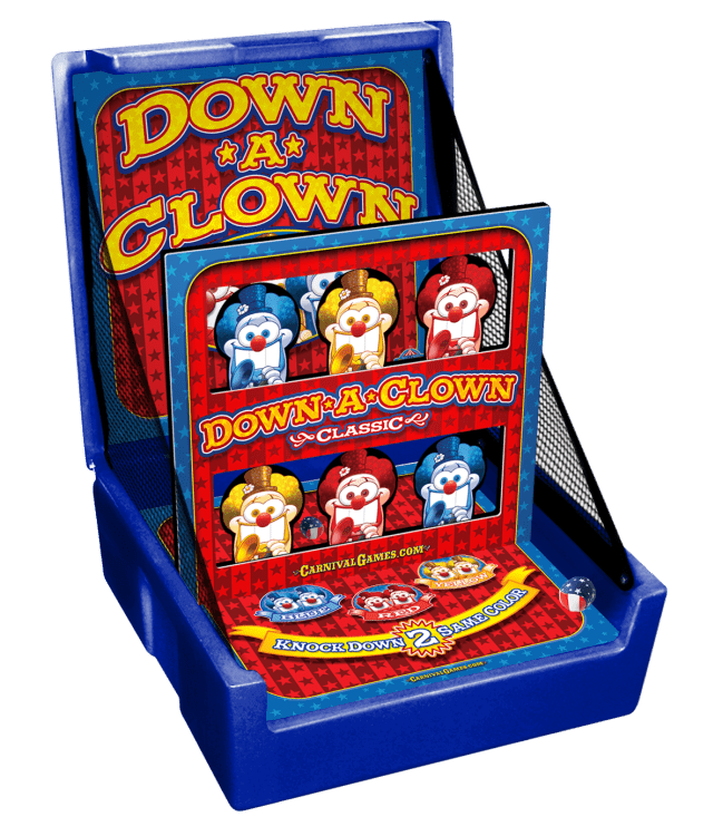 Down a Clown is a bright and playful tabletop carnival game that brings classic midway energy to any event. Players toss bean bags toward a row of cheerful clown targets, aiming to knock them down with accuracy and just the right amount of force. Clear the targets and you win!