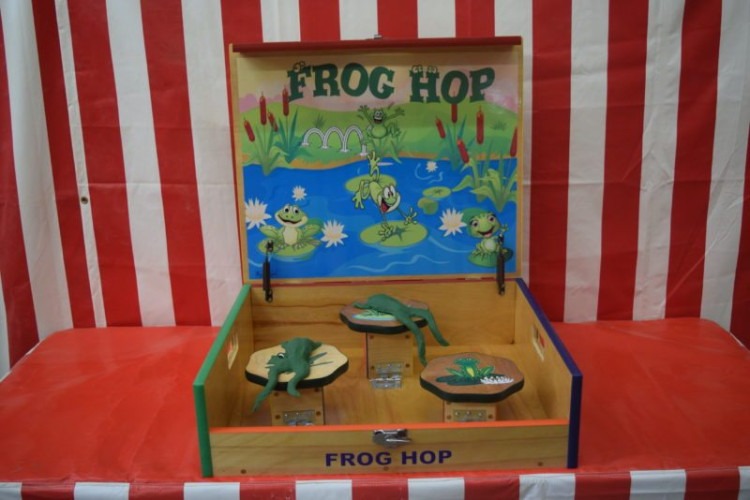 Launch the frog with a mallet and aim for the lily pads to win. A classic carnival game that guests love at school and church carnivals.